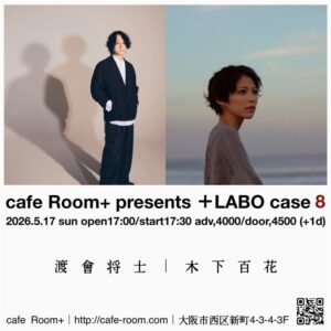 2026年5月17日(日)大阪・cafe Room+にて、渡會将士と木下百花の2MANライブ「「cafe Room presents +LABO case8」の開催が決定いたしました!!