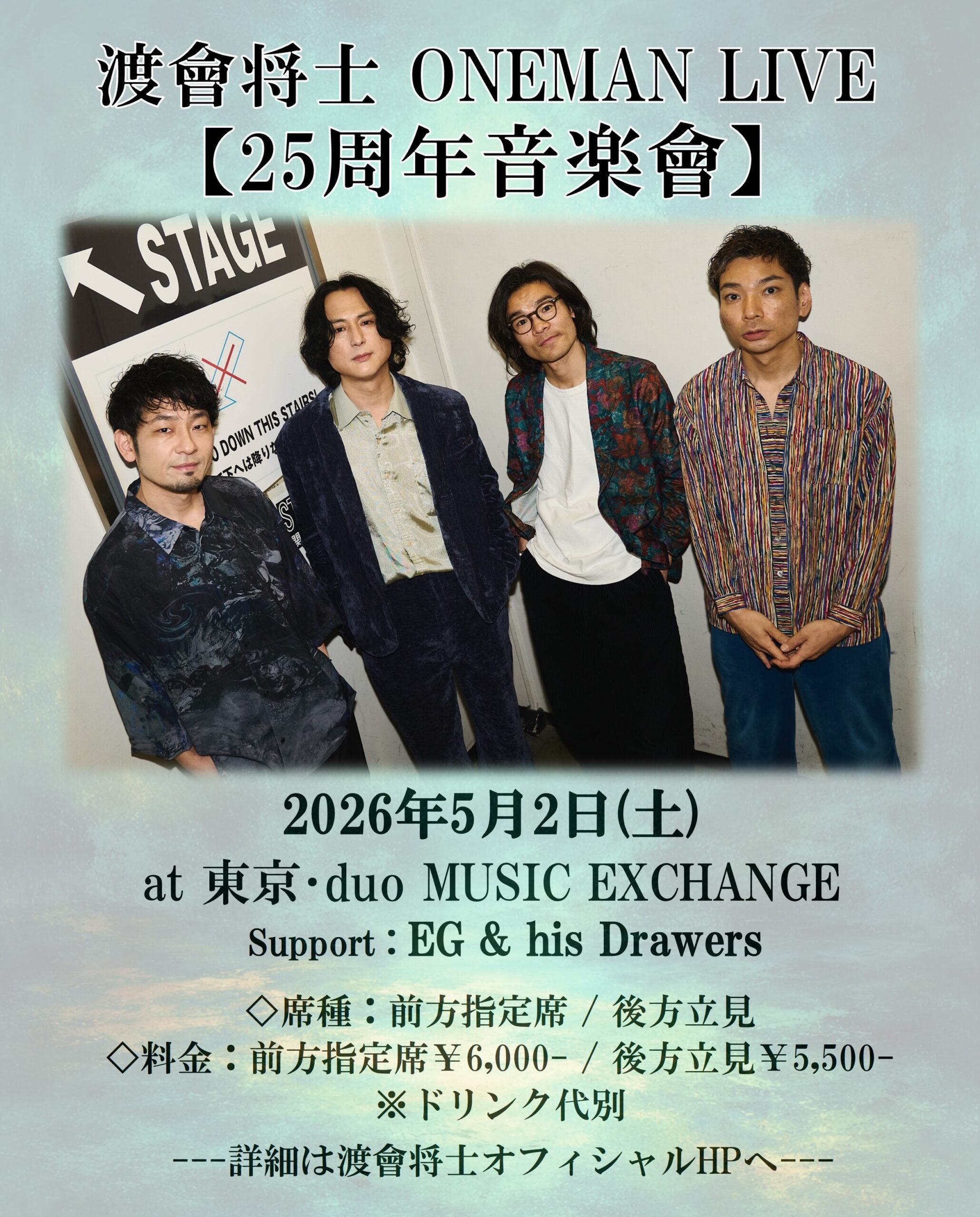 5/2(土)ワンマンライブ「渡會将士 25周年音楽會」WATA LABO無料メルマガ会員&プレイガイド チケット先着先行受付決定!!
